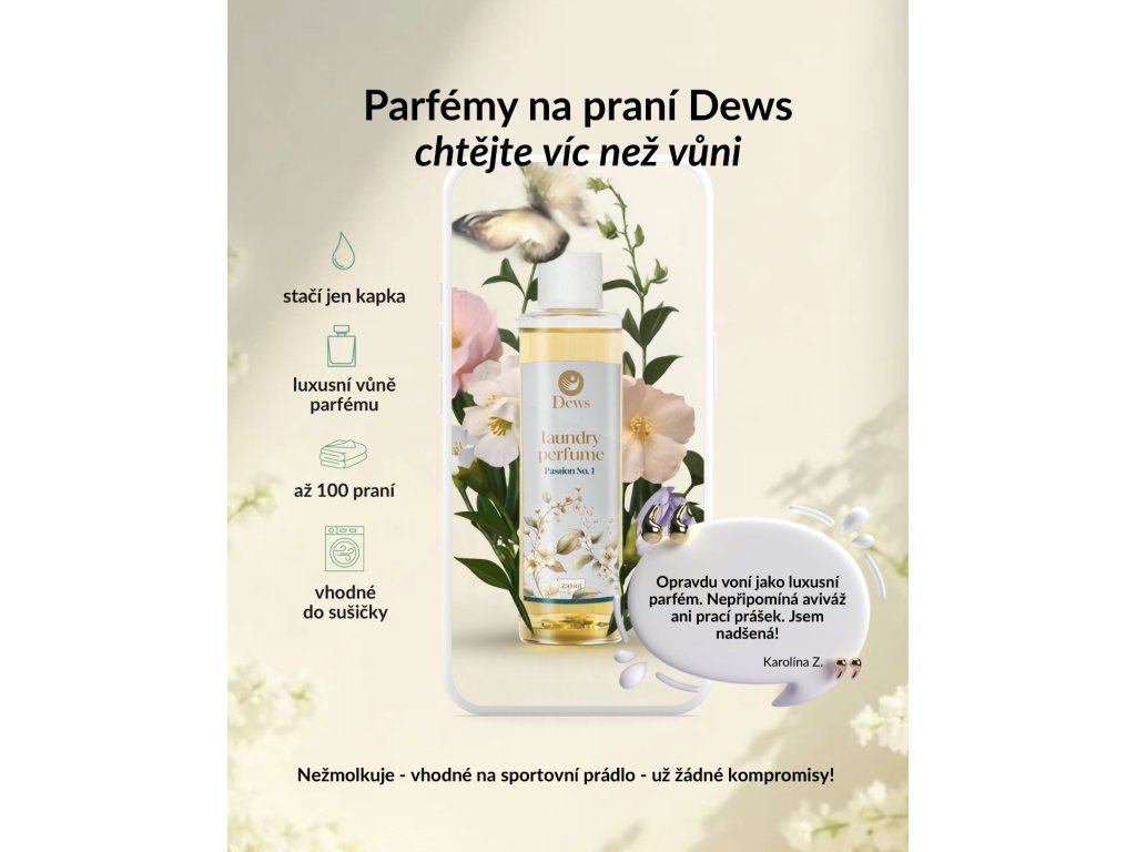 DEWS PARFÉM NA PRANÍ PASSION No. 1 Přeneste se do světa květinové vůně s osvěžujícim ovocnou melodií.